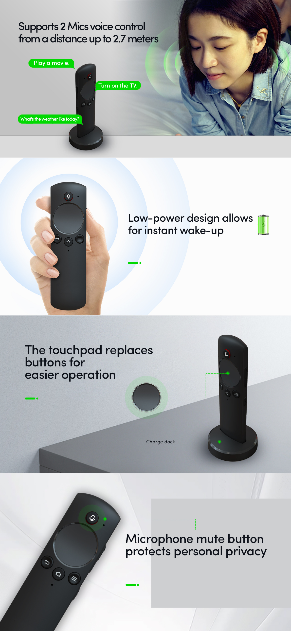 Goertek Voice Remote controller, using low-power far-field voice control technolog and touchpad design, greatly improve the operating experience.